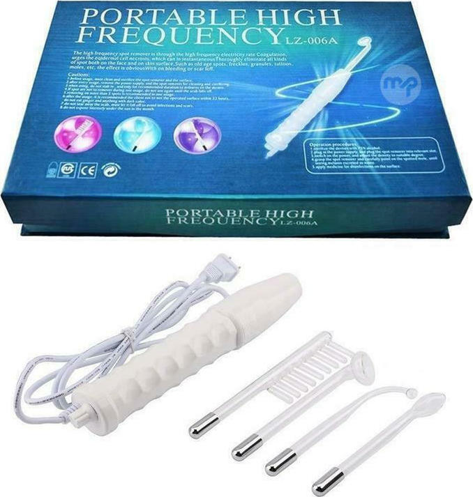 Η φορητή συσκευή υψηλών συχνοτήτων είναι ιδιαίτερα εύχρηστη και διατίθεται με 4 γυάλινα ηλεκτρόδια για διάφορες χρήσεις ανάλογα με την περιοχή του δέρματος προς περιποίηση: