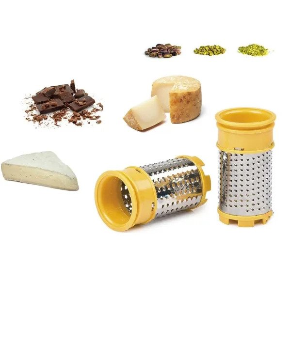 Επίσης, έχει ειδικές σχάρες για να τρίβει σκληρό τυρί, εύκολα και γρήγορα, ενώ είναι κατάλληλο για σοκολάτα και για αποξηραμένο ψωμί.