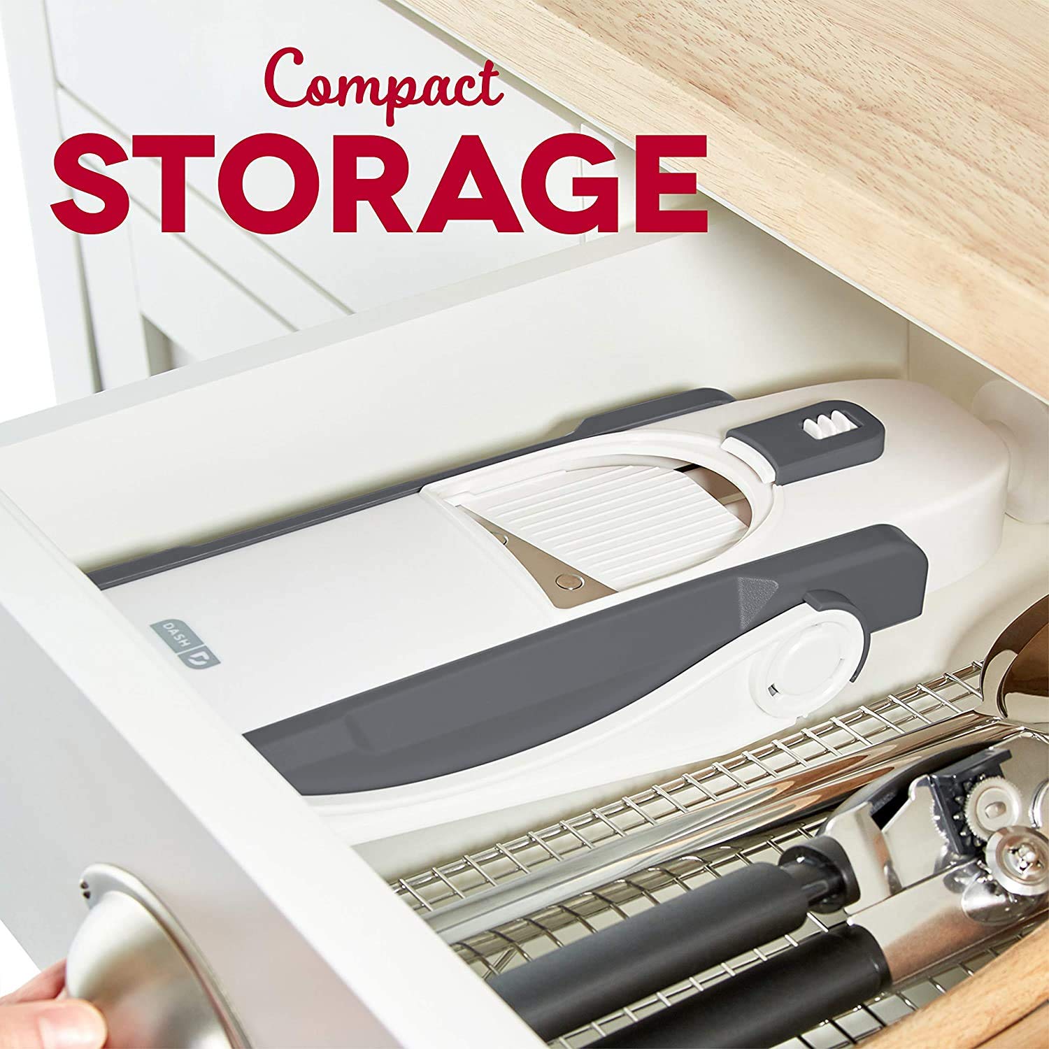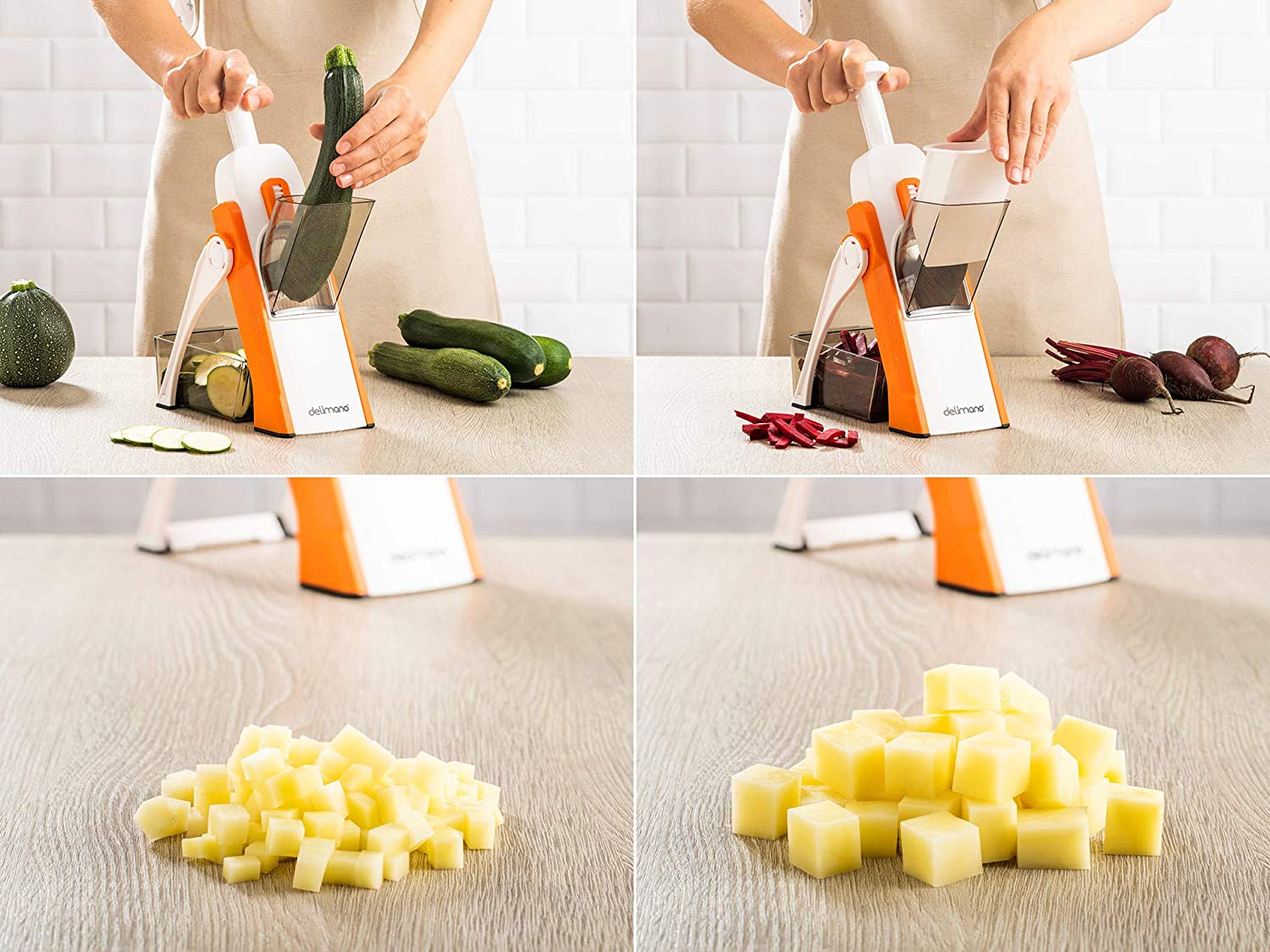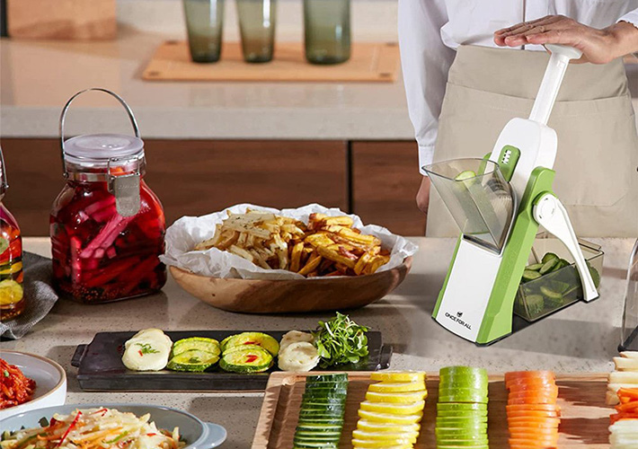 Επαναστατικός πολυκόφτης με ρύθμιση πάχους κοπής 1-8mm για άψογα κομμένα φρούτα και λαχανικά.