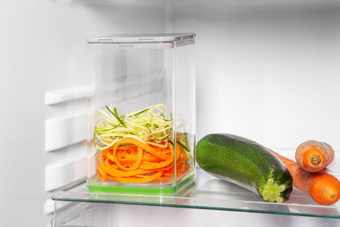 Τέλος, τα λαχανικά που κόβονται, αποθηκεύονται απευθείας στο πλαστικό δοχείο που κλείνει με καπάκι, εξασφαλίζοντας αεροστεγή αποθήκευση.