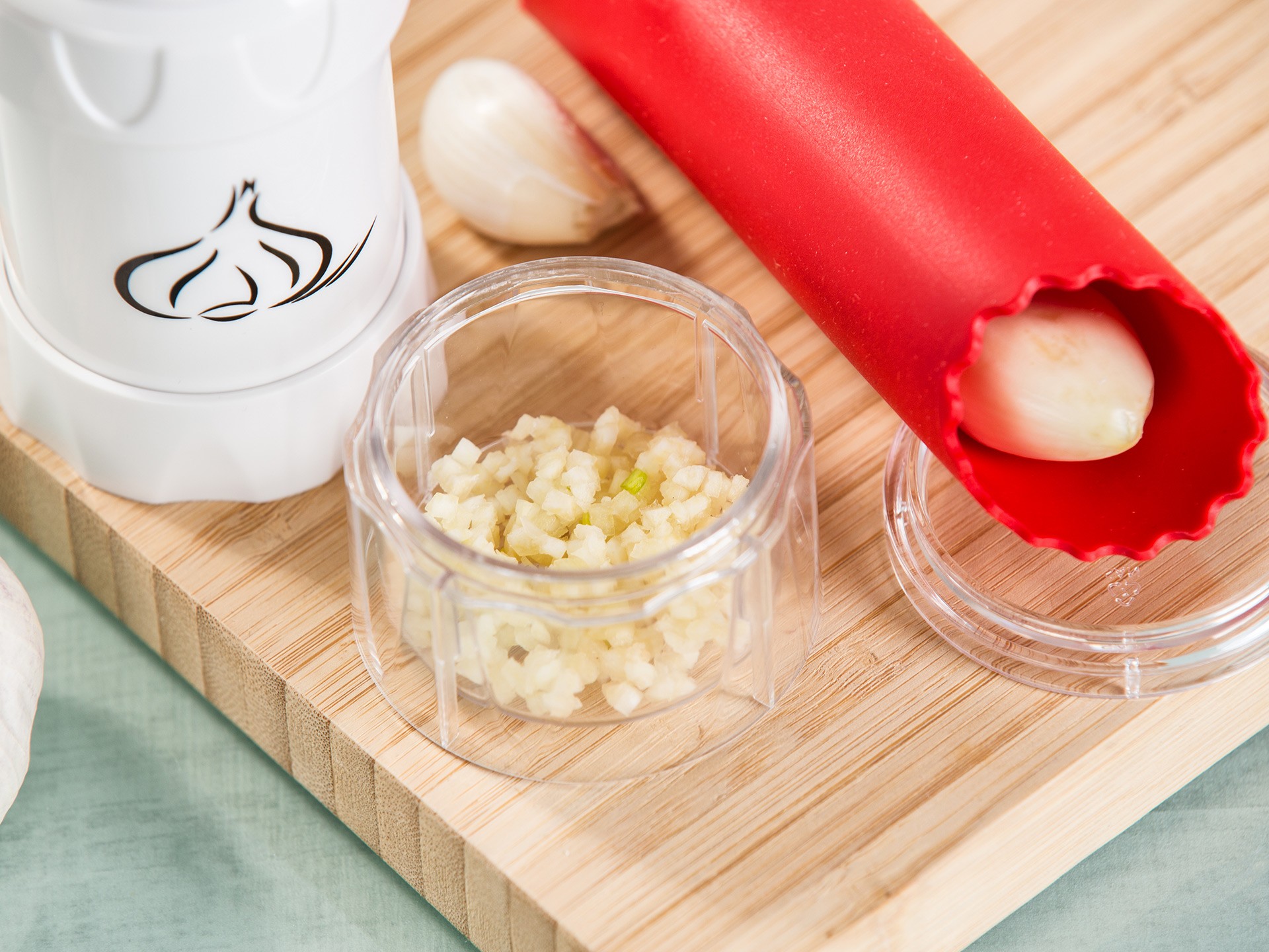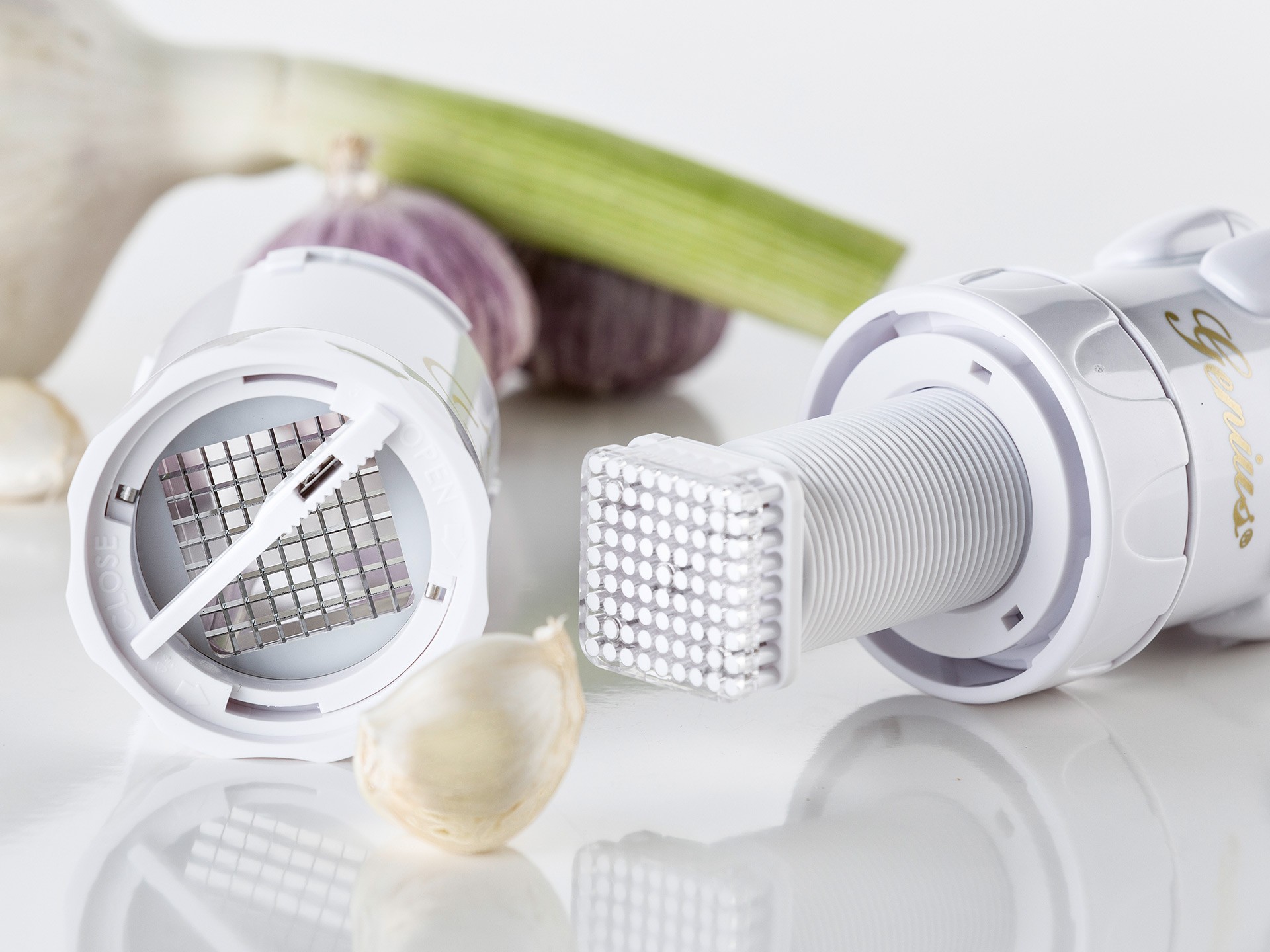 Λιώστε σκόρδο εύκολα και γρήγορα χωρίς τον κίνδυνο τραυματισμού κάνοντας την ίδια εργασία με τον τρίφτη! Ο κόφτης σκόρδου 4 σε 1 κάνει τη δύσκολη δουλειά για εσάς χωρίς να χρειάζεται να έρχονται τα χέρια σας σε επαφή με το σκόρδο ούτε λεπτό!