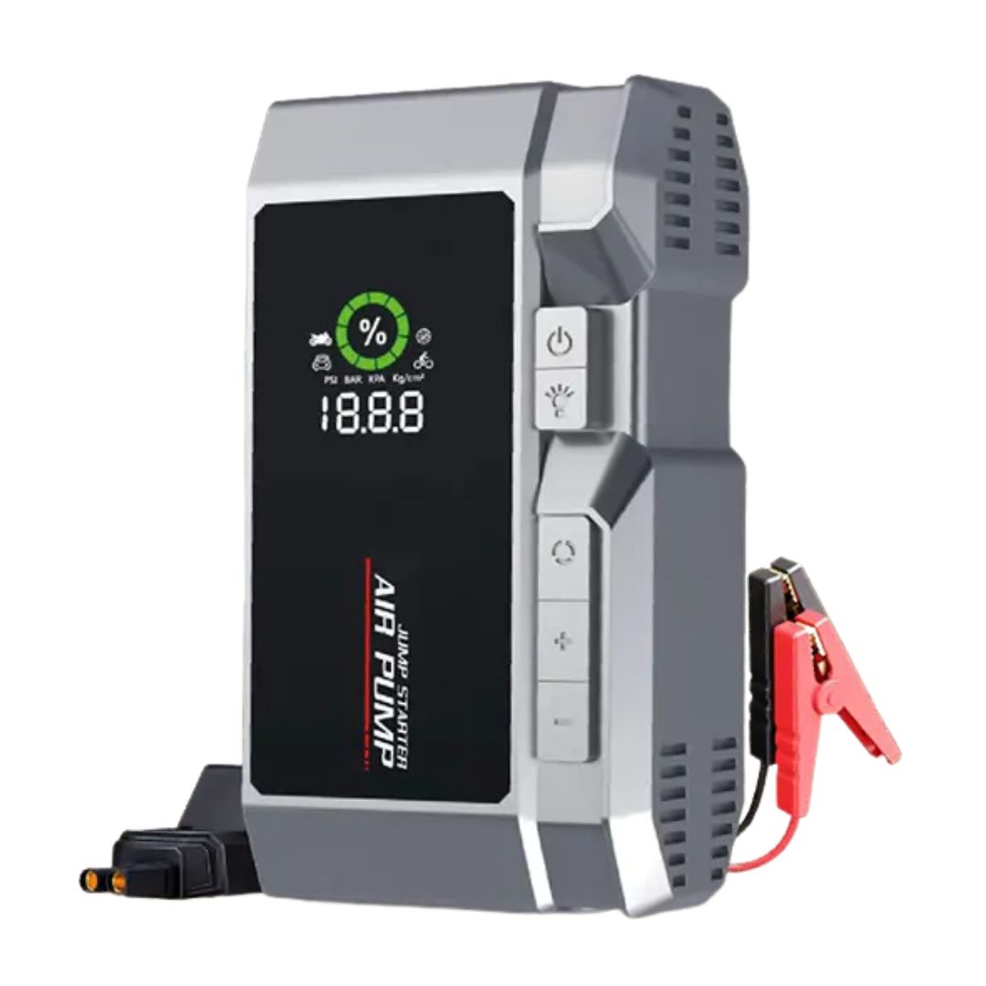 Ο Φορητός εκκινητής μπαταρίας 4 σε 1 σας προσφέρει αξιόπιστη υποστήριξη σε κάθε διαδρομή, συνδυάζοντας εκκίνηση μπαταρίας, αεροσυμπιεστή και δυνατότητα φόρτισης συσκευών σε μία πρακτική φορητή μονάδα.