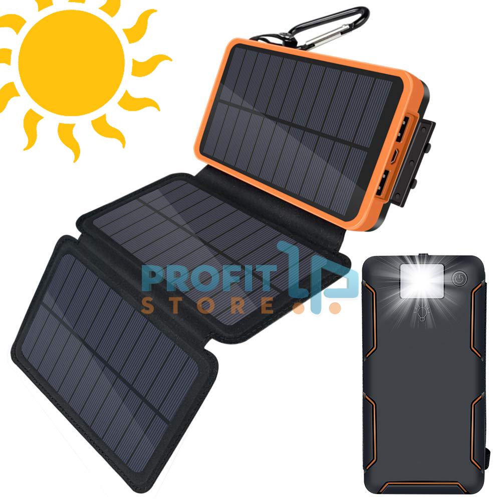 Αδιάβροχη Ηλιακή Μπαταρία Φορτιστής με 3x Ηλιακά Πάνελ 20000mAh Υψηλής Ισχύος 2A & Φωτιστικό / Φακό LED - Foldable Solar PowerBank