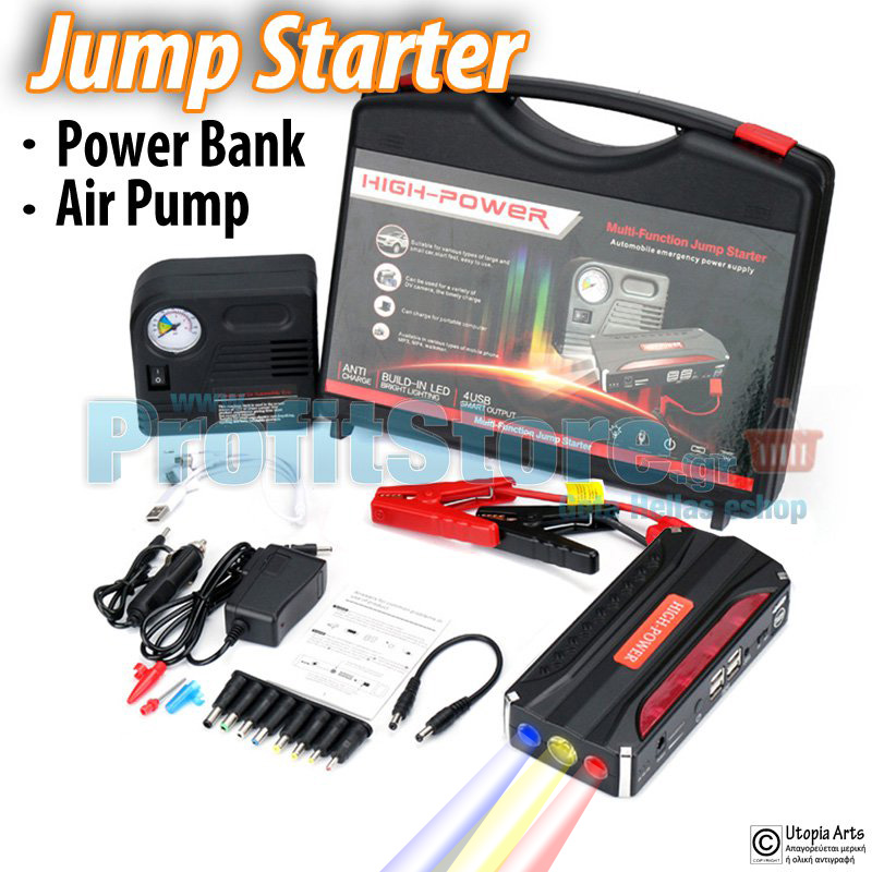 Η μπαταρία Jump Start Τροφοδοτικό, είναι ένα ισχυρό και συμπαγές Power bank με δύο θύρες φόρτισης USB, που έχει σχεδιαστεί για τη φόρτιση όλων των φορητών συσκευών, καθώς και από τα πρώτα power bank που κυκλοφορούν στην παγκόσμια αγορά που είναι σε θέση να δώσουν ρεύμα σε όχημα που έμεινε από μπαταρία ! Παράλληλα, διαθέτει και μια έξοδο φόρτισης και τροφοδοσίας για συσκευές 12V/16V/19V όπως λάπτοπ, φορητούς υπολογιστές κα. Τέλος, σας παρέχονται 8 διαφορετικού πάχους βύσματα για να καλύπτουν πληθώρα θυρών φόρτισης.