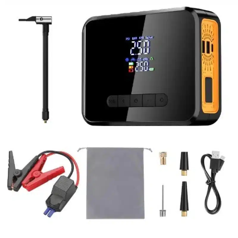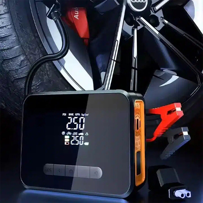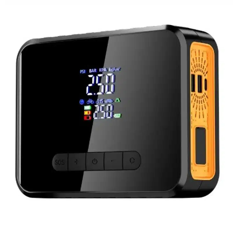 Παράλληλα, η ενσωματωμένη τρόμπα αέρος 150PSI σας επιτρέπει να φουσκώσετε τα ελαστικά σας γρήγορα και με ακρίβεια, χάρη στην ψηφιακή LCD οθόνη που εμφανίζει την τρέχουσα πίεση.