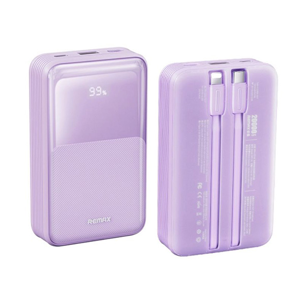 Το Power Bank της Remax σε μοβ χρώμα 20000mAh PD20W και QC22.5W με 2 Καλώδια γρήγορης φόρτισης σας επιτρέπει να φορτίστε άμεσα και ευέλικτα πολλαπλές συσκευές με άνεση!