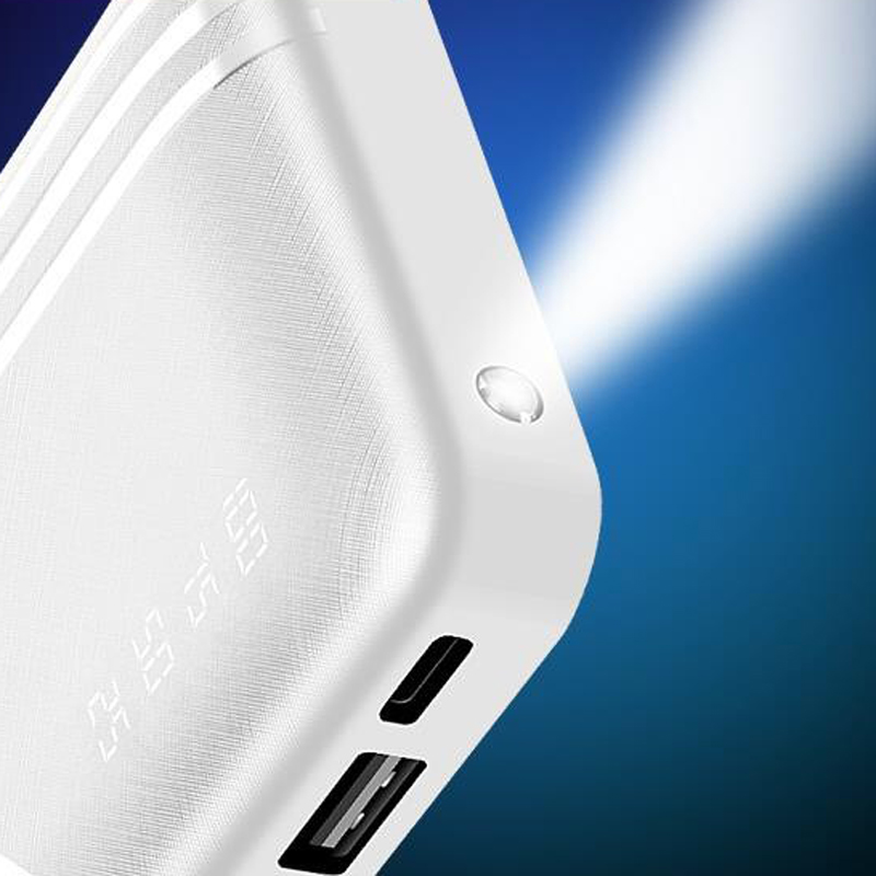 Διαθέτει 4 LED ενδείξεις φόρτισης (25%, 50%, 75% και 100%), 2 θύρες USB για να φορτίζετε όχι μόνο μία, αλλά δυο συσκευές ταυτόχρονα, θύρα microUSB και type-c για να επαναφορτίζεται και φακό για να βλέπετε στο σκοτάδι!