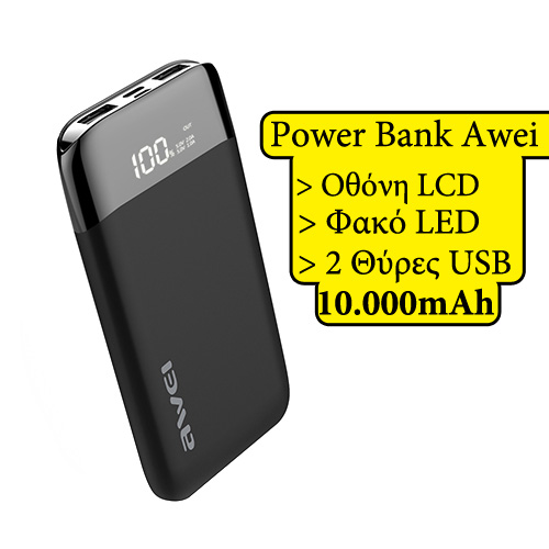 Power Bank Awei P52K 10.000 mAh για να μην ξεμένεις ποτέ απο μπαταρία.