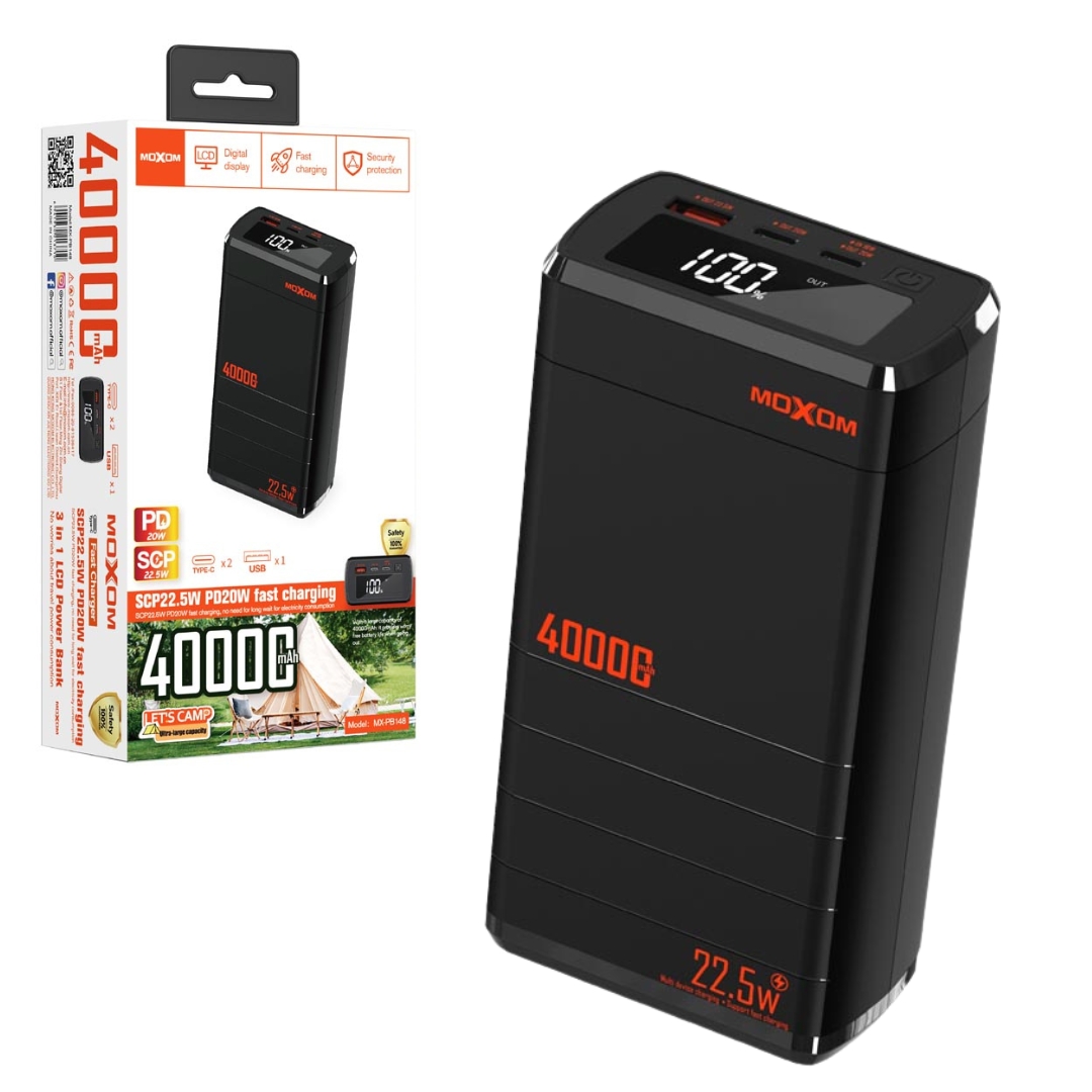 Όταν η ενέργεια είναι απαραίτητη, είτε βρίσκεστε εν κινήσει, στη δουλειά, στην εξοχή ή σε ταξίδι, το Powerbank 40000mAh της MOXOM λειτουργεί σαν αξιόπιστη πηγή φόρτισης!
