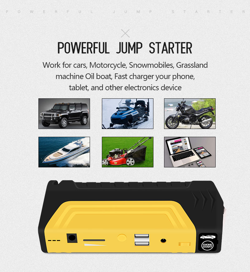 Μπορεί να φορτίσει κάθε συσκευή σαν Power bank, από το κινητό σας και το tablet, το MP3 player και την κάμερα, ενώ ταυτόχρονα μπορεί να δώσει ρεύμα για να ξεκινήσει μία μηχανή ή ένα αυτοκίνητο αν μείνετε από μπαταρία, λειτουργώντας ως Jump Starter!