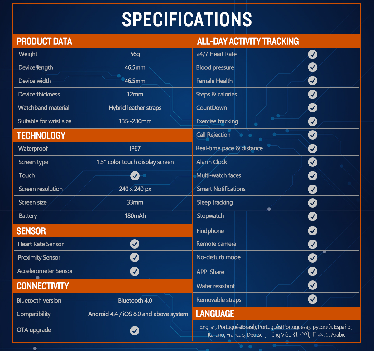 Ποικιλία παρακολούθησης αθλημάτων: Υποστήριξη περπατήματος, τρεξίματος, κολύμβησης, πεζοπορίας, ποδηλασίας, ποδοσφαίρου, μπάσκετ, πινγκ -πονγκ, μπάντμιντον.