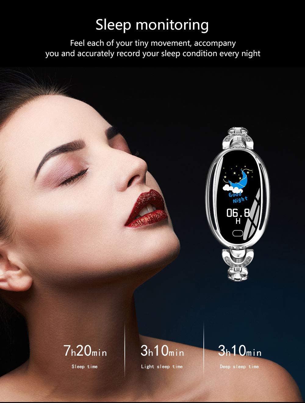 Βασικές λειτουργίες: εμφάνιση χρόνου και ημερομηνίας, μέτρηση βημάτων, θερμίδες, προβολή απόστασης, τυπική λειτουργία κίνησης (βήμα, απόσταση, θερμίδες), παρακολούθηση ύπνου (χρόνος ύπνου, ποιότητα ύπνου)