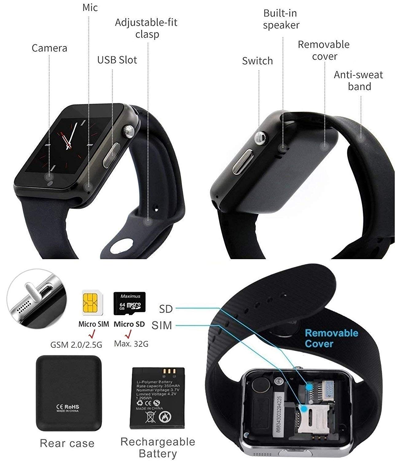 Συνδέοντας SIM και SD κάρτα στο ρολόι το μετατρέπετε σε ένα κανονικό κινητό τηλέφωνο! Δημιουργήστε επαφές, στείλτε μηνύματα, συνδεθείτε στο ίντερνετ ή κάντε χρήση των εφαρμογών που είναι εγκατεστημένες (Facebook και Twitter). Μπορεί να χρησιμοποιηθεί και σαν δεύτερο τηλέφωνο.