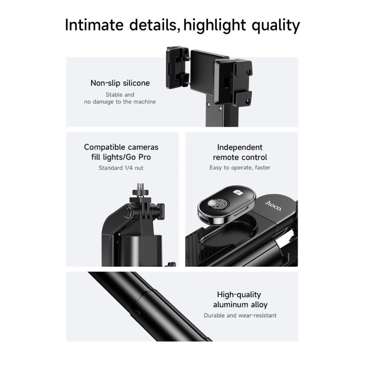 Ο hoco K32 είναι ένας ανθεκτικός, all‑in‑one βραχίονας για κινητό που λειτουργεί ως selfie stick, τρίποδο και έξυπνος holder με αυτοματοποιημένη παρακολούθηση προσώπου. Ιδανικό για δημιουργούς περιεχομένου, livestream, online μαθήματα, γρήγορα video ή ομαδικές φωτογραφίες, προσφέρει πολύ μεγαλύτερη ευελιξία από ένα απλό monopod.