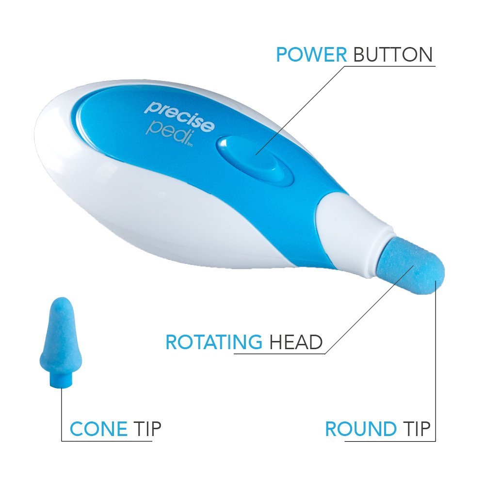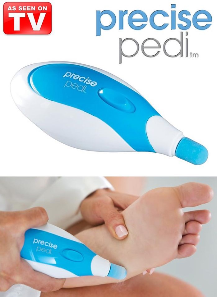 Το ''Precise Pedi" είναι μία ηλεκτρική λίμα ποδιών που βοηθάει να κάνουμε εύκολα και αποτελεσματικά το πεντικιούρ στο σπίτι και να αφαιρέσουμε απλά και απαλά το αντιαισθητικό σκληρό δέρμα στην περιοχή των πελμάτων!