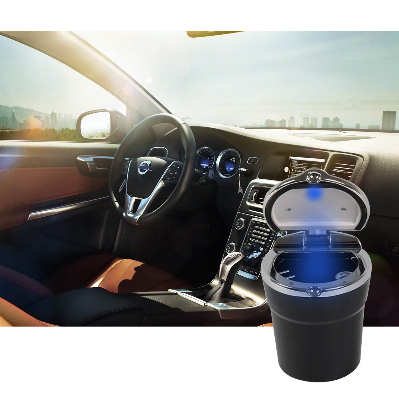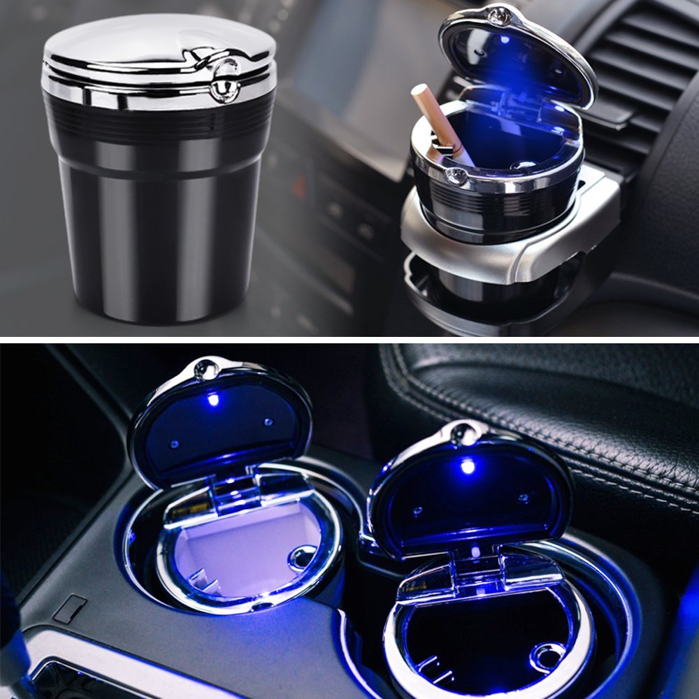 Φωτιζόμενο φορητό τασάκι αυτοκίνητου, που χωράει σε οποιαδήποτε ποτηροθήκη αυτοκινήτου.