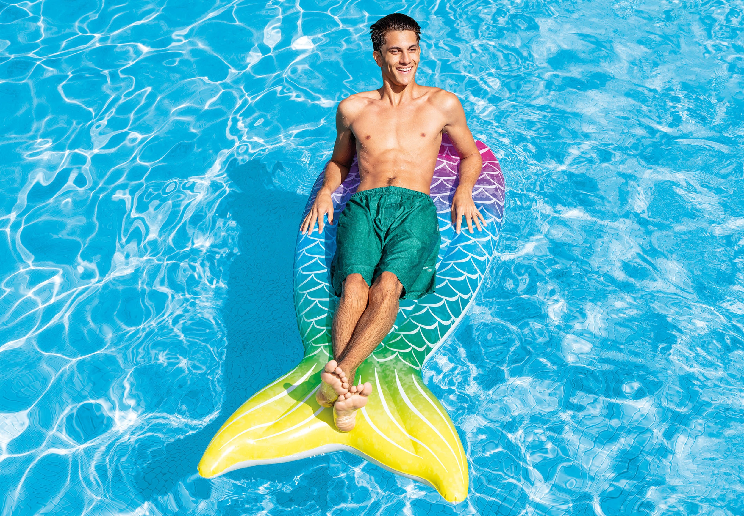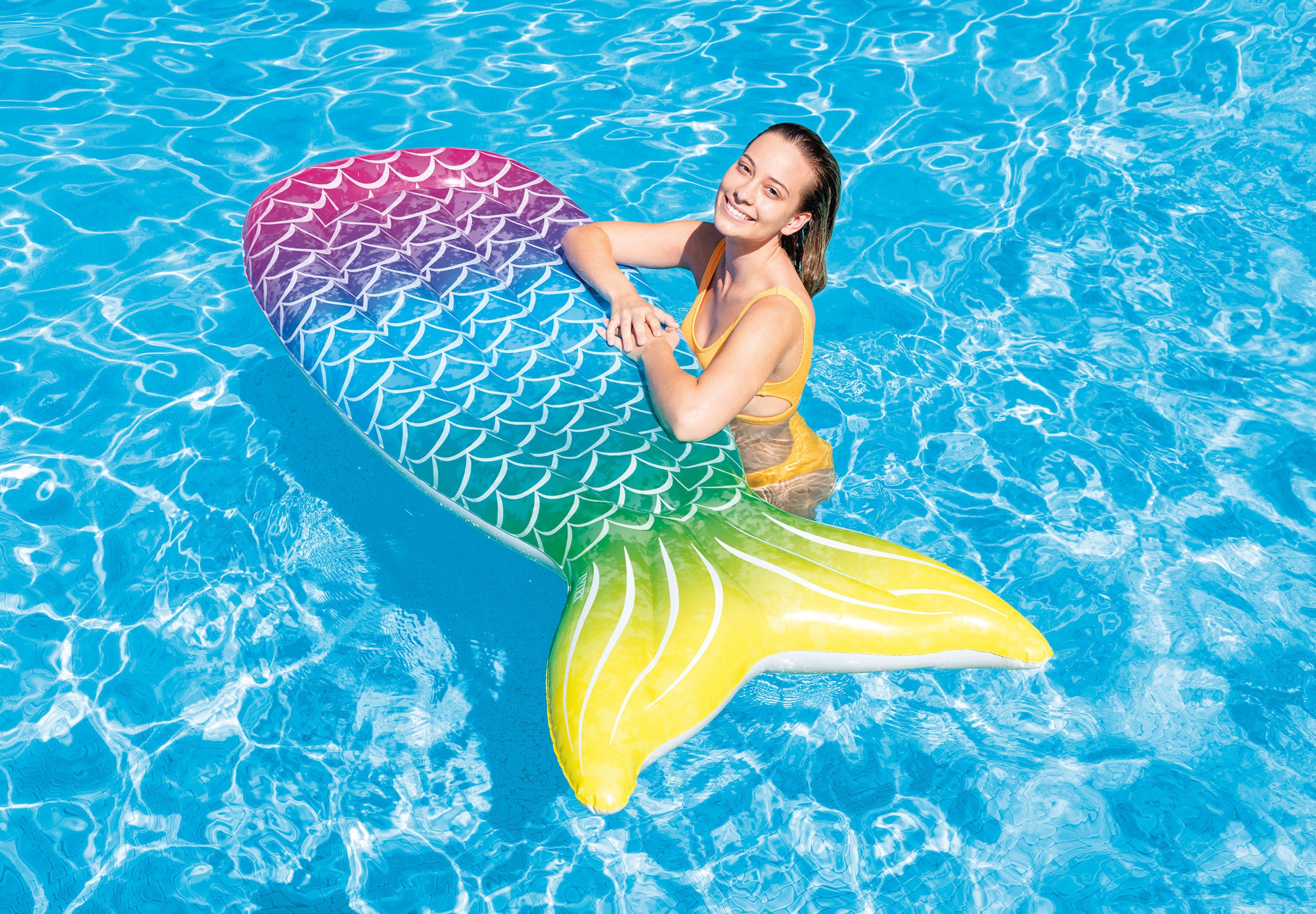 Μια εντυπωσιακή φουσκωτή πολύχρωμη ουρά γοργόνας για τη θάλασσα και την πισίνα !