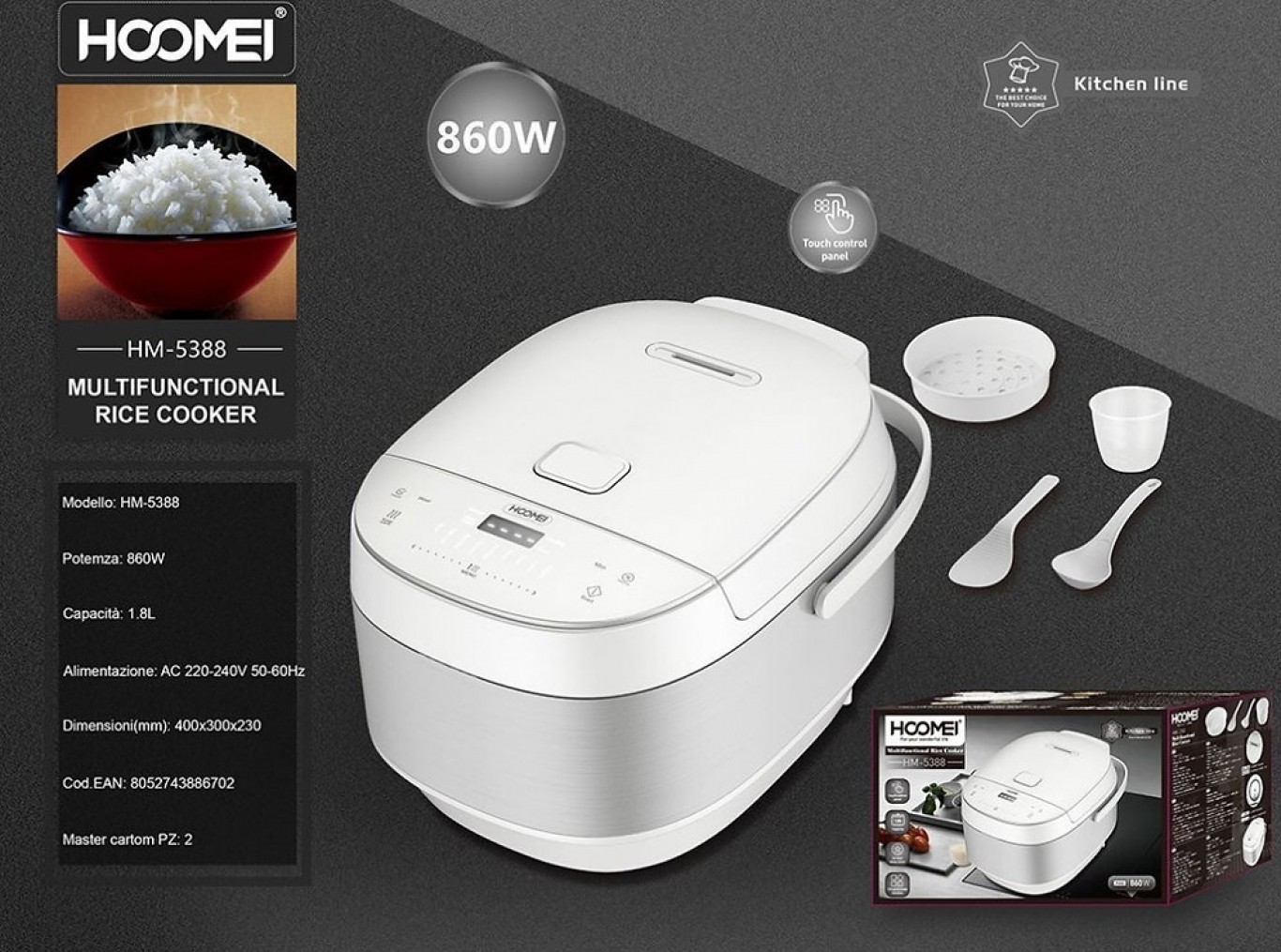 - 1 x Hoomei® Πολυλειτουργικός Βραστήρας Ρυζιού 860W