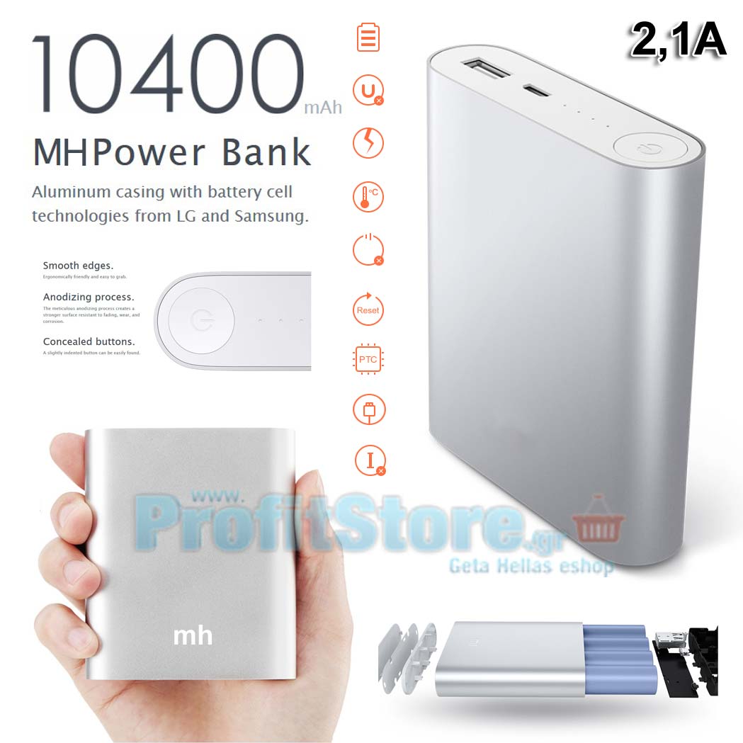 Υψηλής Απόδοσης και Ισχύος Φορητή Μπαταρία Power Bank. Χρησιμοποιεί υψηλής ποιότητας μπαταρίες της LG και της Samsung με άφθονη ισχύ, μεγάλο κύκλο ζωής και πραγματική χωρητικότητα 10.400mAh !