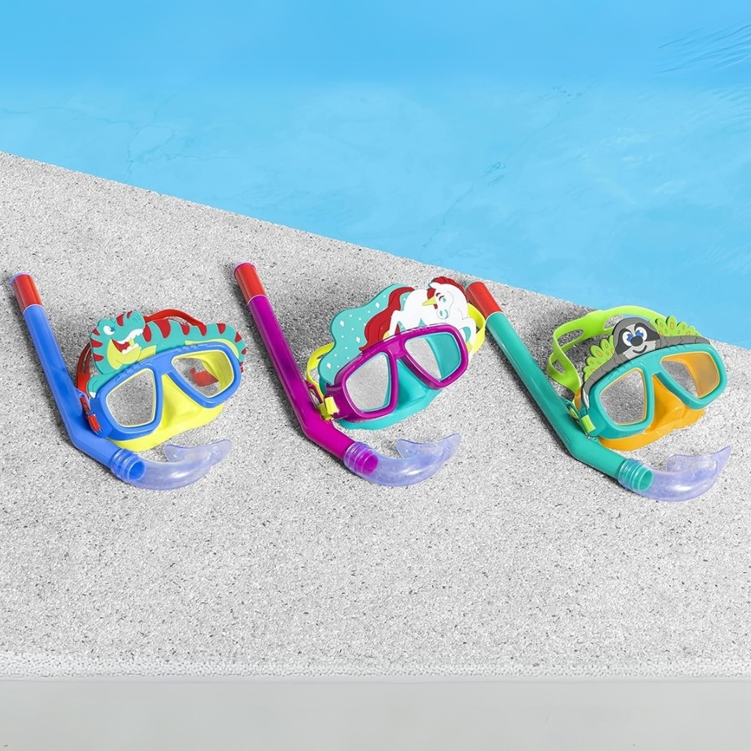 Σχεδιασμένο ειδικά για μικρούς εξερευνητές, το σετ περιλαμβάνει μάσκα και αναπνευστήρα σε χαρούμενα χρώματα και παιχνιδιάρικα σχέδια με ζωάκια, που μετατρέπουν την κάθε βουτιά σε διασκέδαση.