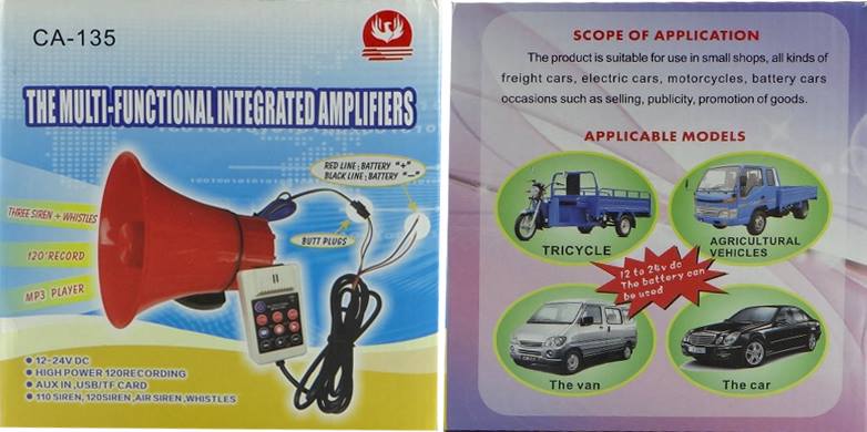 Αυτός ο τηλεβόας - ντουντούκα - κόρνα με σειρήνα 12V-20Watt (max 40Watt) με μαγνήτη είναι ιδανική συσκευή για οχήματα security, περιπολίας, νοσοκομειακά για ανακοινώσεις - διαφημίσεις από κινούμενα οχήματα ή στατικά - συγκεντρώσεις, πορείες, μικροπωλητές κλπ.