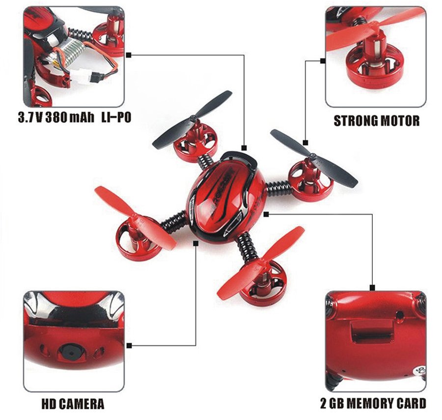 Διαθέτει εγκατεστημένη μικρο κάμερα 0,3mp ( 640x480p ) και αποθηκεύει βίντεο και φωτογραφίες σε κάρτα microSD ( περιλαμβάνεται κάρτα 2Gb ) ενώ η λειτουργία της κάμερας ελέγχεται πλήρως από το τηλεχειριστήριο.