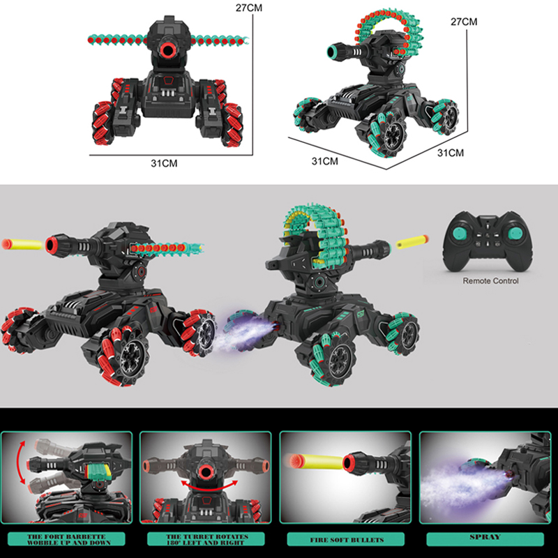 Άκρως εντυπωσιακό όμως είναι το πρωτοποριακό εφέ ψεκασμού νερού όπου διαθέτει! Γεμίζετε με απλό νερό στο πίσω μέρος του κάτω από τον εκτοξευτήρα, και πάλι με το πάτημα ενός κουμπιού, το πίσω μέρος του όπου μοιάζει με κινητήρα τζέτ, ζωντανεύει με LED και αρχίζει να πετάει πίσω καπνό όσο κινείται το τανκ!