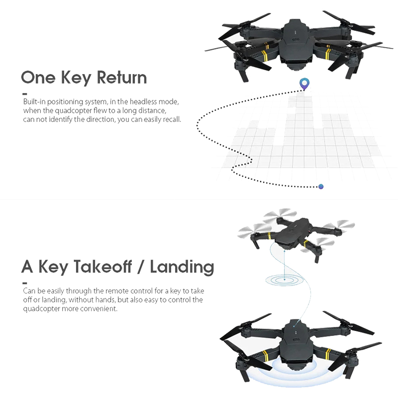 Αν η μπαταρία τείνει να ξεφορτιστεί, το Drone μπορεί να επιστρέψει εύκολα στο σημείο έναρξης πτήσης, με το πάτημα ενός κουμπιού!