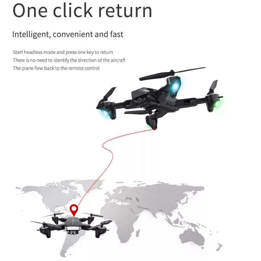 Με το πάτημα ενός κουμπιού το Drone απογειώνεται μόνο του για να κάνει τον χειρισμό του πιο εύκολο και χάρη στο GPS του με το πάτημα ενός κουμπιού επιστρέφει μόνο του στον χειριστή!