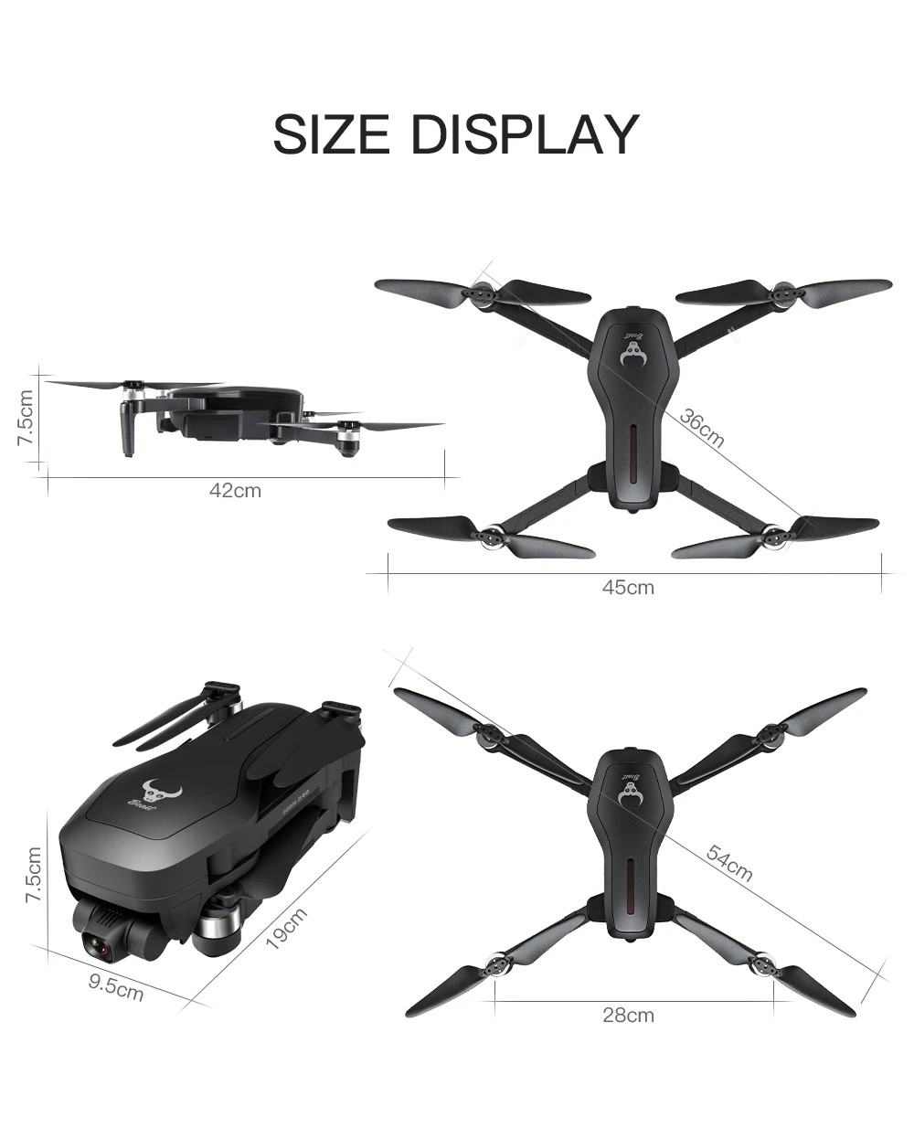 - Διαστάσεις Drone: 45 x 42x 7.5 cm (ανοιγμένο) 19 x 9.5 x 7.5cm (διπλωμένο)