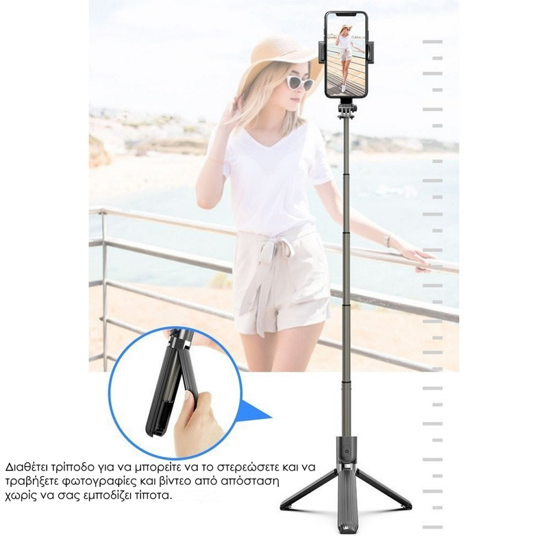 Με μια κίνηση ξεδιπλώνεται και γίνεται Selfie Stick δίνοντάς αμέτρητες γωνίες λήψης, αλλά αν είστε "σταθερός τύπος ανθρώπου" αναδιπλώστε εύκολα τα τρία πόδια στο κάτω μέρος και έχετε ένα τρίποδο άμεσα!