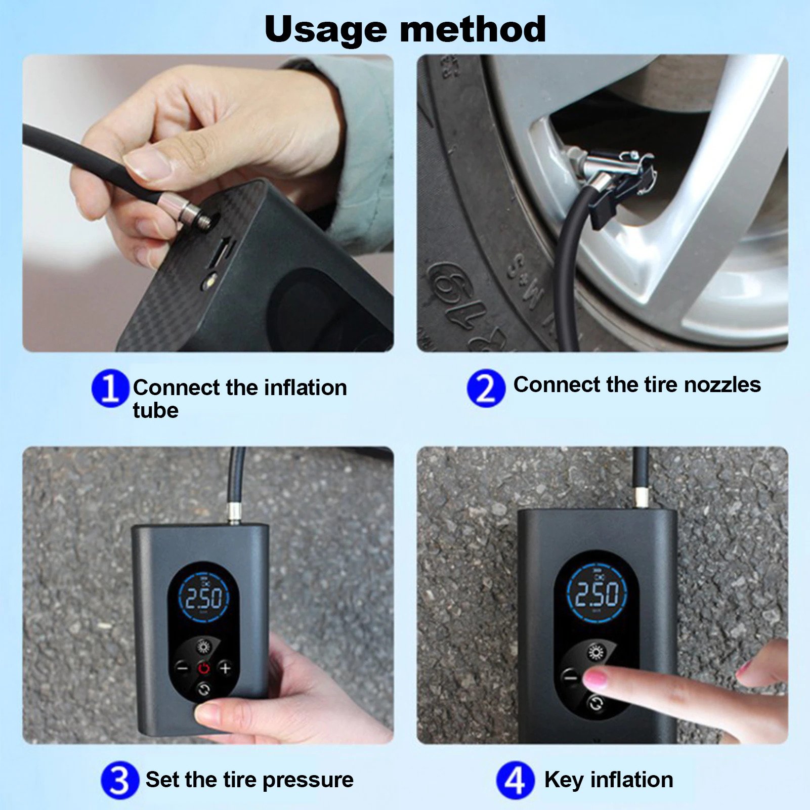 Είναι πολύ εύκολο στην χρήση και μπορεί να σας φανεί χρήσιμο σε αμέτρητες περιπτώσεις. Με το πάτημα ενός κουμπιού μπορείτε να φουσκώσετε και ελέγξετε την πίεση στα ελαστικά σας, να τα ξεφουσκώσετε αν είστε λάτρης του Off Roading και θέλετε να ξεπεράσετε κάποιο εμπόδιο, να φουσκώσετε μπάλες και φουσκωτά παιχνίδια και άλλα πολλά!