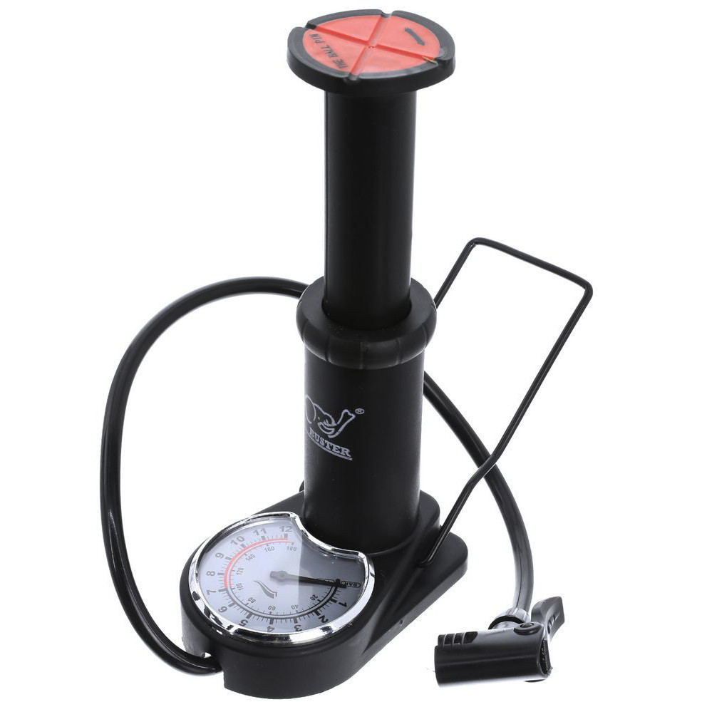 Τρόμπα Ποδιού 12 bar / 170 psi με Μανόμετρο Buster Mini Foot Pump. Τρόμπα ποδιού, με μεγάλο μανόμετρο, διπλής βαλβίδας με διπλό μακρύ ρακόρ. Ικανότητα: 12bar / 170 psi. Διαστάσεις 10,6 X 7,4 X 15 cm. Τρόμπα ποδιού για το ποδήλατο, τα φουσκωτά στρώματα, τις μπάλες, φουσκωτές βάρκες κλπ.