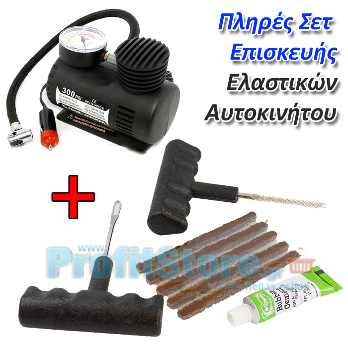 Το κιτ περιλαμβάνει όλα όσα χρειάζεστε για την επισκευή και το φούσκωμα των ελαστικών.