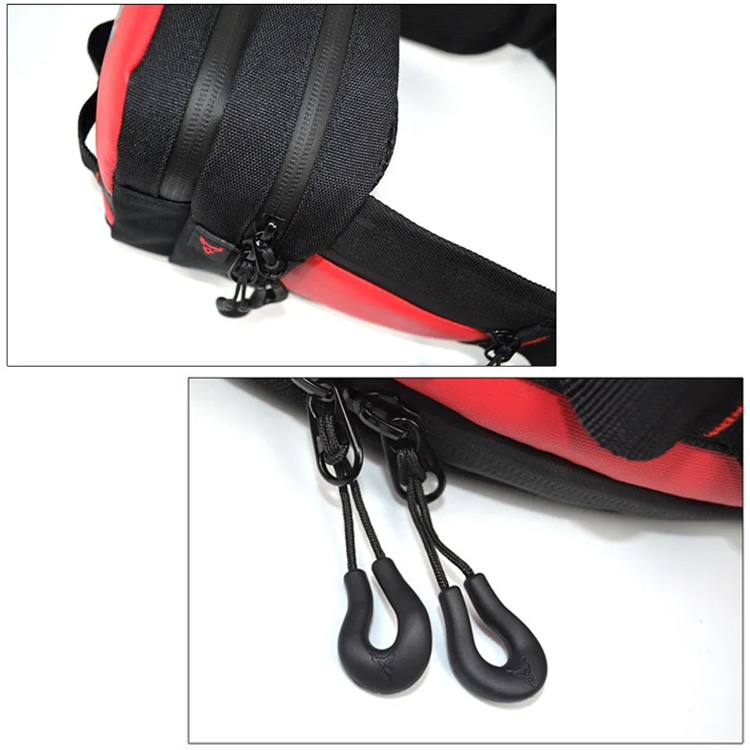 Καινοτόμο τσαντάκι μέσης μηχανής από πλήρως αδιάβροχο ύφασμα για να προστατεύει το εσωτερικό.