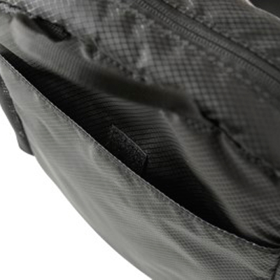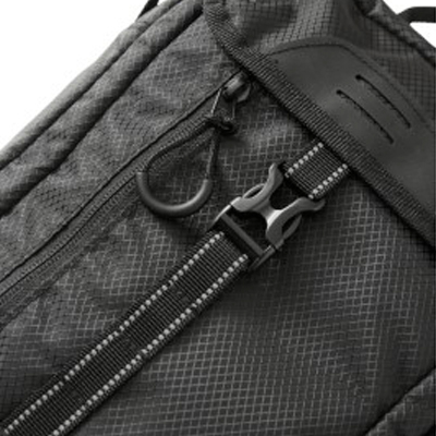 Στο εξωτερικό εντοπίζουμε μπροστινή κάθετη τσέπη με φερμουάρ και ανακλαστικό κάλυμμα φερμουάρ καθώς και τσέπη με πτερύγιο με μπάλωμα hypalon για την προσάρτηση φωτός ποδηλάτου.
