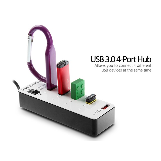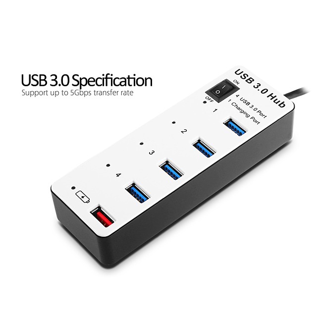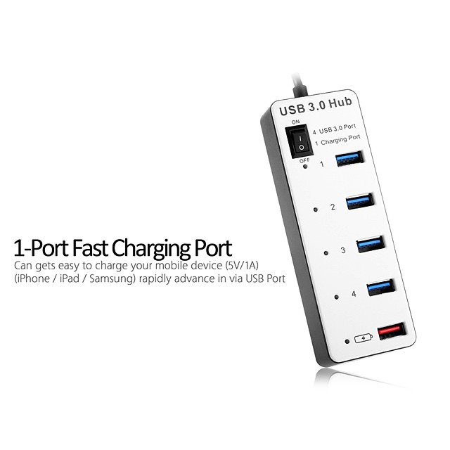 Ένα Usb 3.0 hub με 4 +1 θύρες usb υψηλής ταχύτητας (4.8 Gbps) που σας δίνουν τη δυνατότητα να συνδέσετε έως και 4 συσκευές ταυτόχρονα + 1 για φόρτιση.
